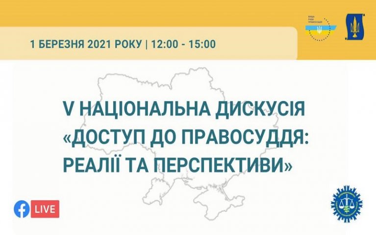 1 березня 2021 року з 12:00 до 15:00 на базі Асоціації розвитку суддівського самоврядування України відбудеться п’яте фахове обговорення в межах Національної дискусії «Доступ до правосуддя: реалії та перспективи».