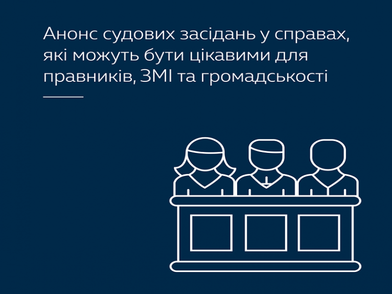 Верховний Суд України анонсував судові засідання у справах, які можуть бути цікавими для юридичної спільноти, ЗМІ та громадськості.
